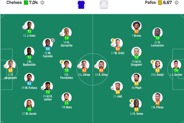 帕福斯首发:1-杰伊·高特、2-皮莱斯、23-卢卡森、12-塞马(83’25-兰加)、11-贾贾(64’8-奎纳)、26-桑吉克、88-佩佩、7-布鲁诺、30-德拉戈米尔、17-奥尔西奇(83’9-巴索亚米纳)、33-安德森·席尔瓦(64’10-迪马塔)。